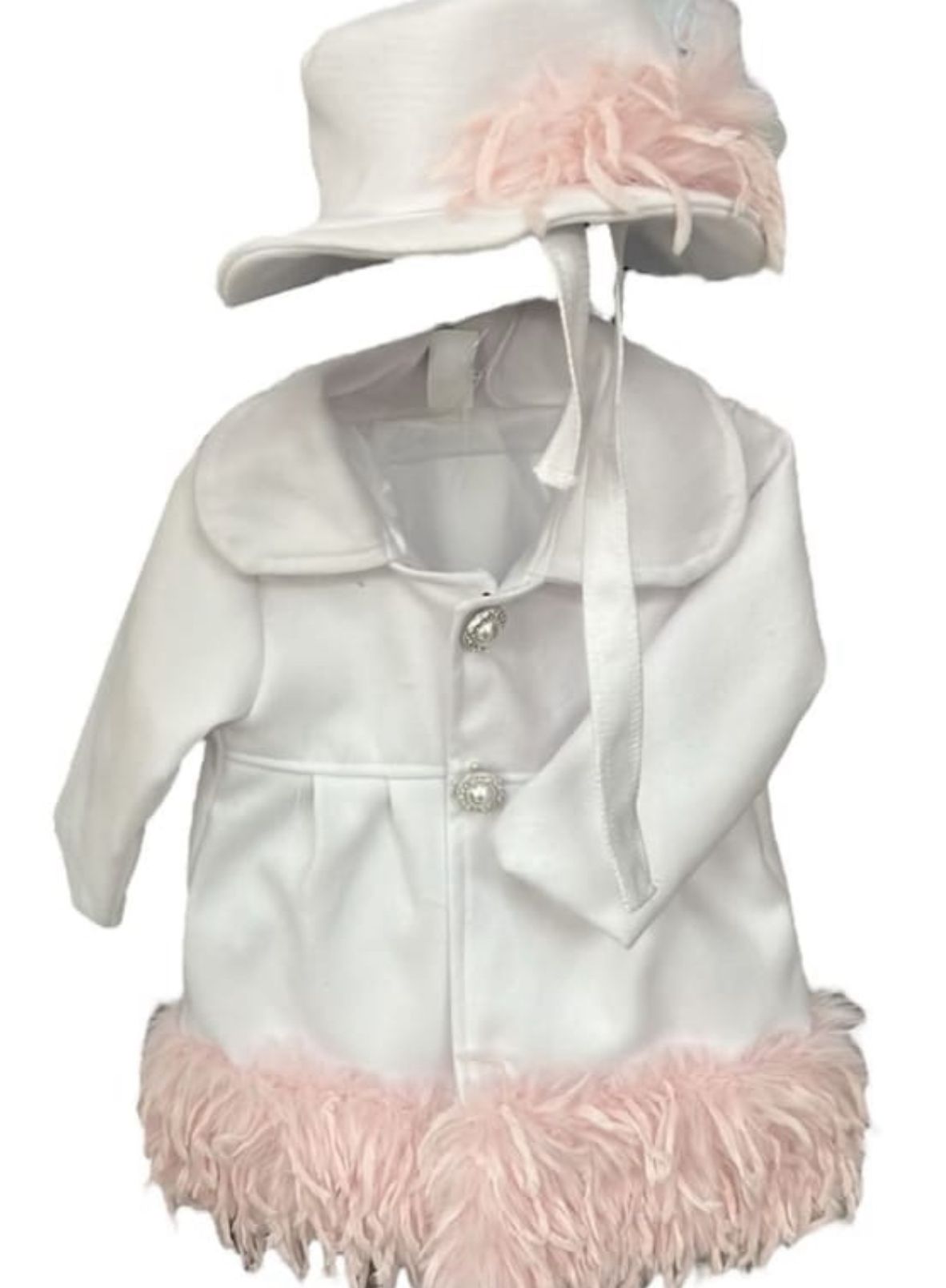 Paltonaș elegant pentru fetițe, realizat din material moale și confortabil, ideal pentru sezonul rece. Designul său rafinat, cu detalii de blăniță roz și pălărioară asortată, transformă orice mică domnișoară într-o adevărată prințesă. Perfect pentru botez, aniversări sau ieșiri speciale!