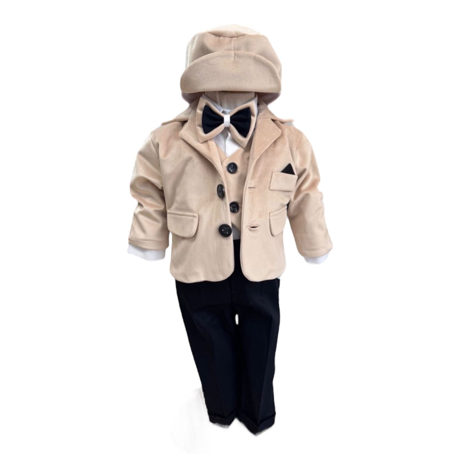 • Căciuliță din același material ca sacoul, completând armonios întregul set;