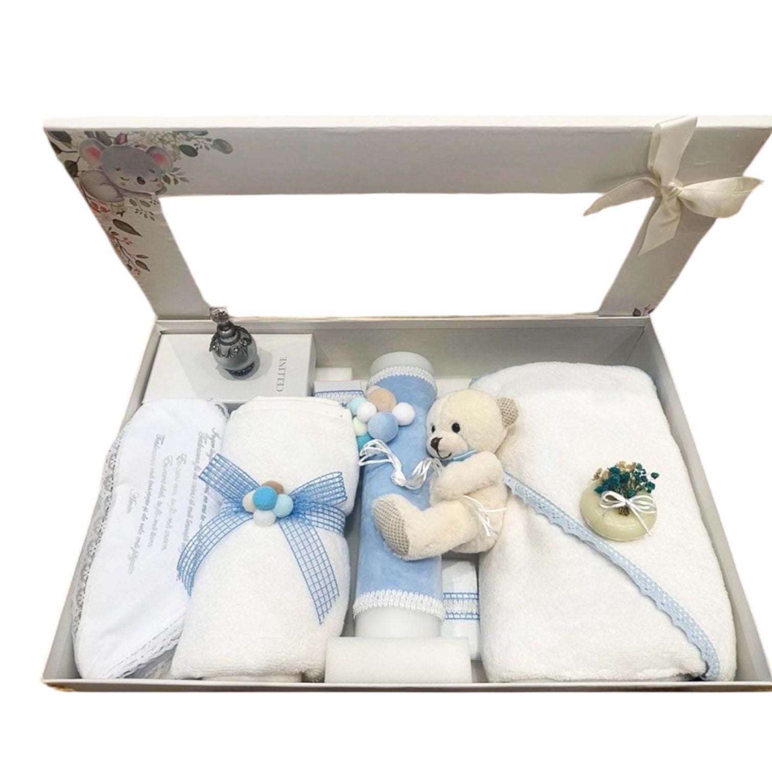 Trusoul este format din cutiuță pentru moț, sticluță mir, prosop bebe cu capison ,prosop preot, pânză cu capison ,fașă și săpun.
