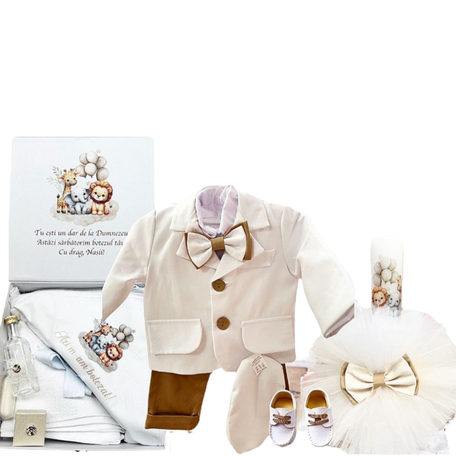 Set botez baietel crem cu pantaloni maro