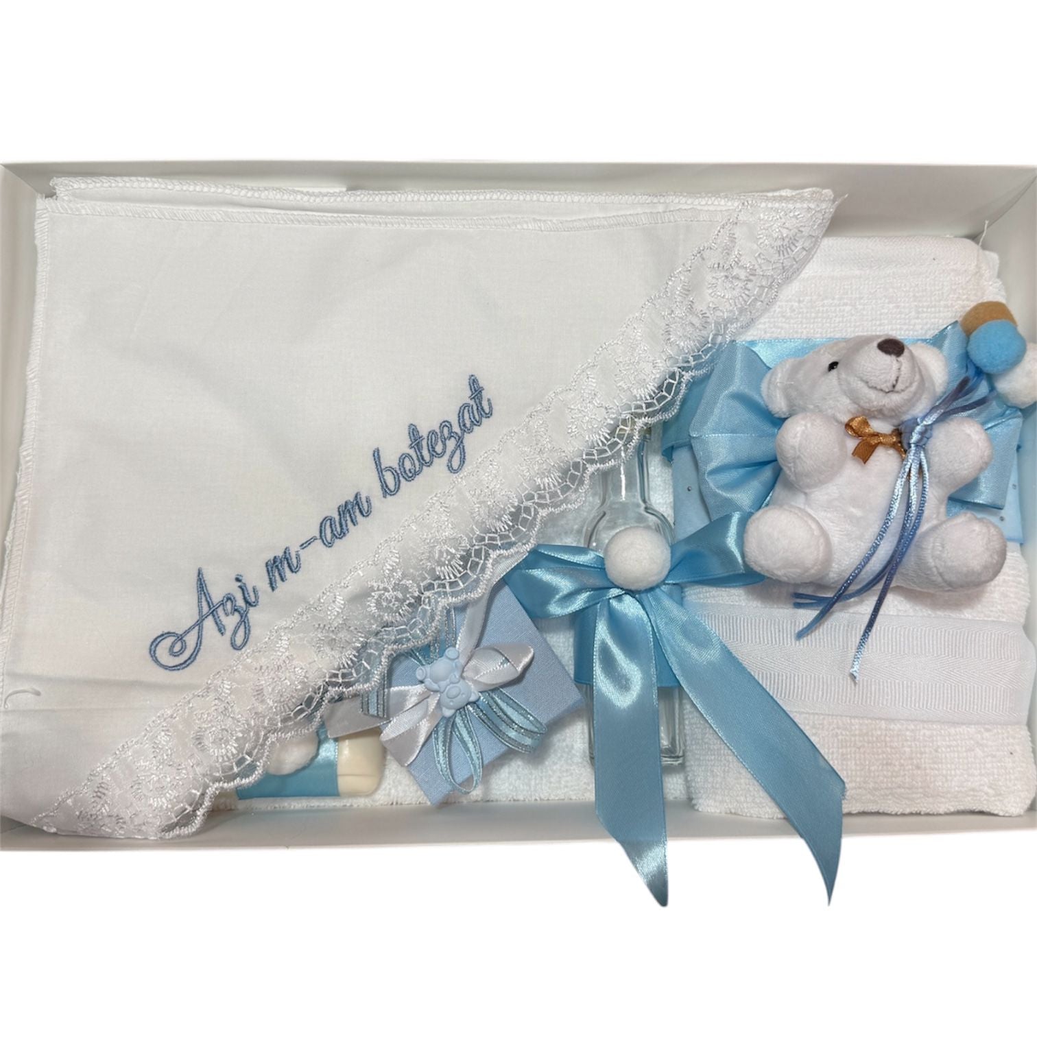 Acest trusou de botez este realizat cu grijă și atenție la detalii, special pentru a marca primul moment important din viața micuțului tău. Setul conține toate elementele esențiale pentru ceremonia religioasă, îmbinând tradiția cu eleganța și rafinamentul.