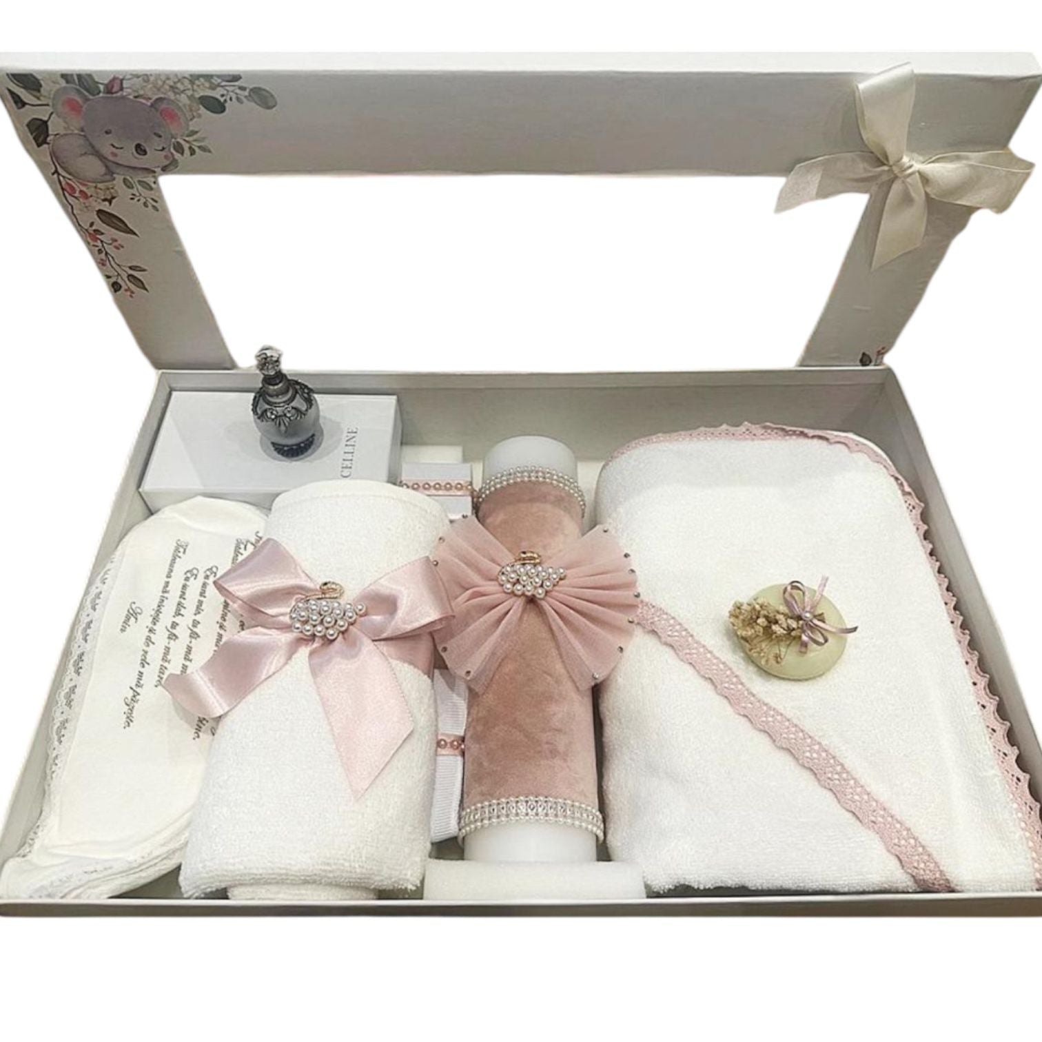 Prosopul pentru bebe, pânza, fașa și lumânarea pot fi personalizate.