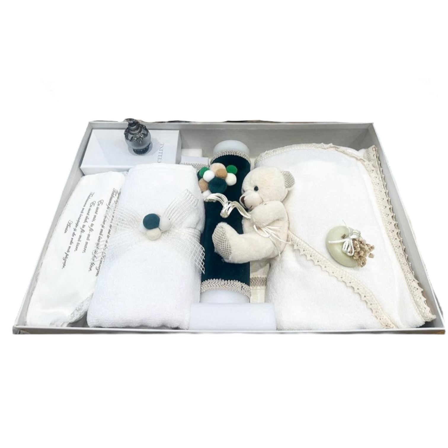 Setul de botez contine: trusou și lumânare.