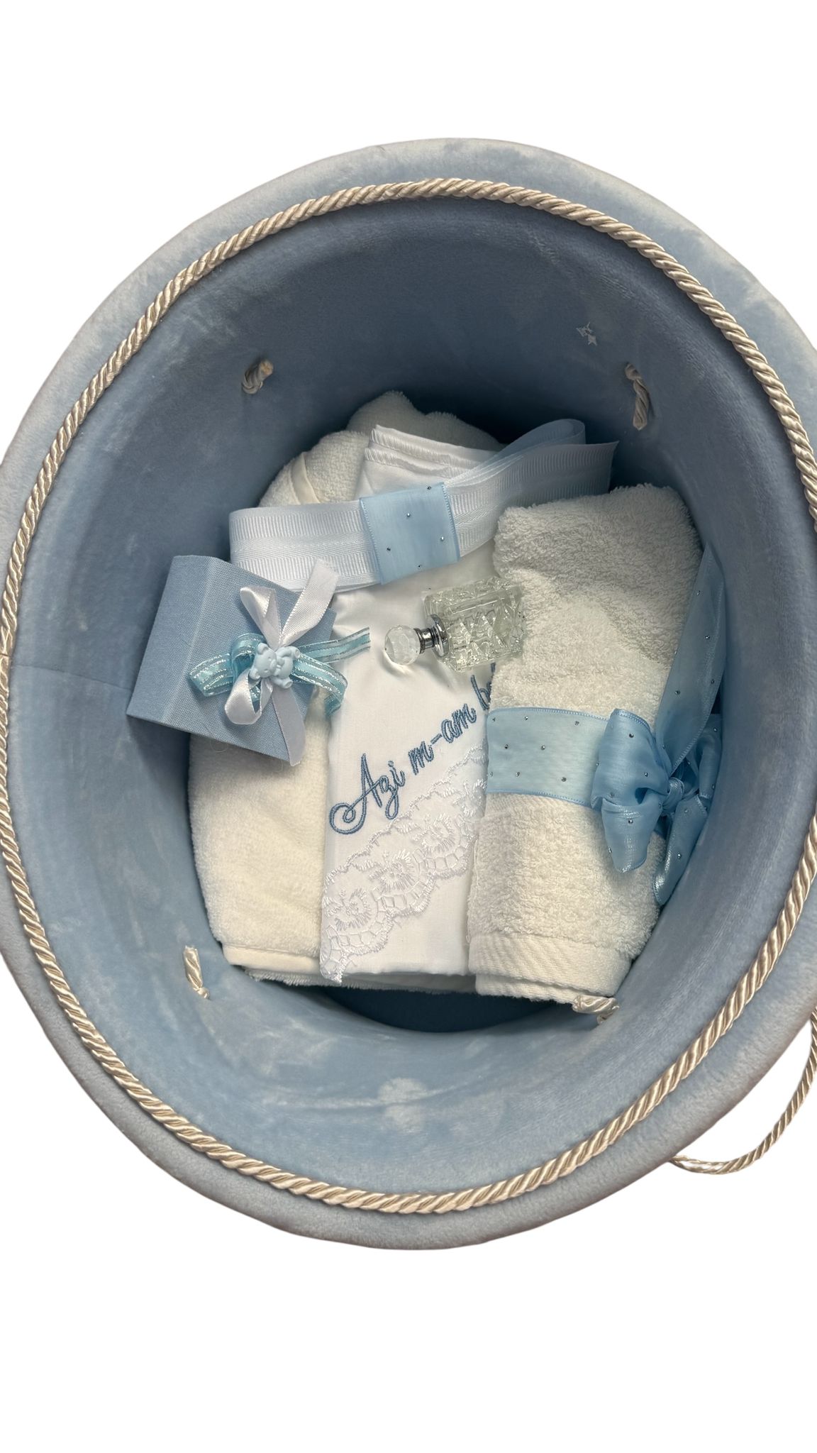 Acest trusou de botez este realizat cu grijă și atenție la detalii, special pentru a marca primul moment important din viața micuțului tău. Setul conține toate elementele esențiale pentru ceremonia religioasă, îmbinând tradiția cu eleganța și rafinamentul.