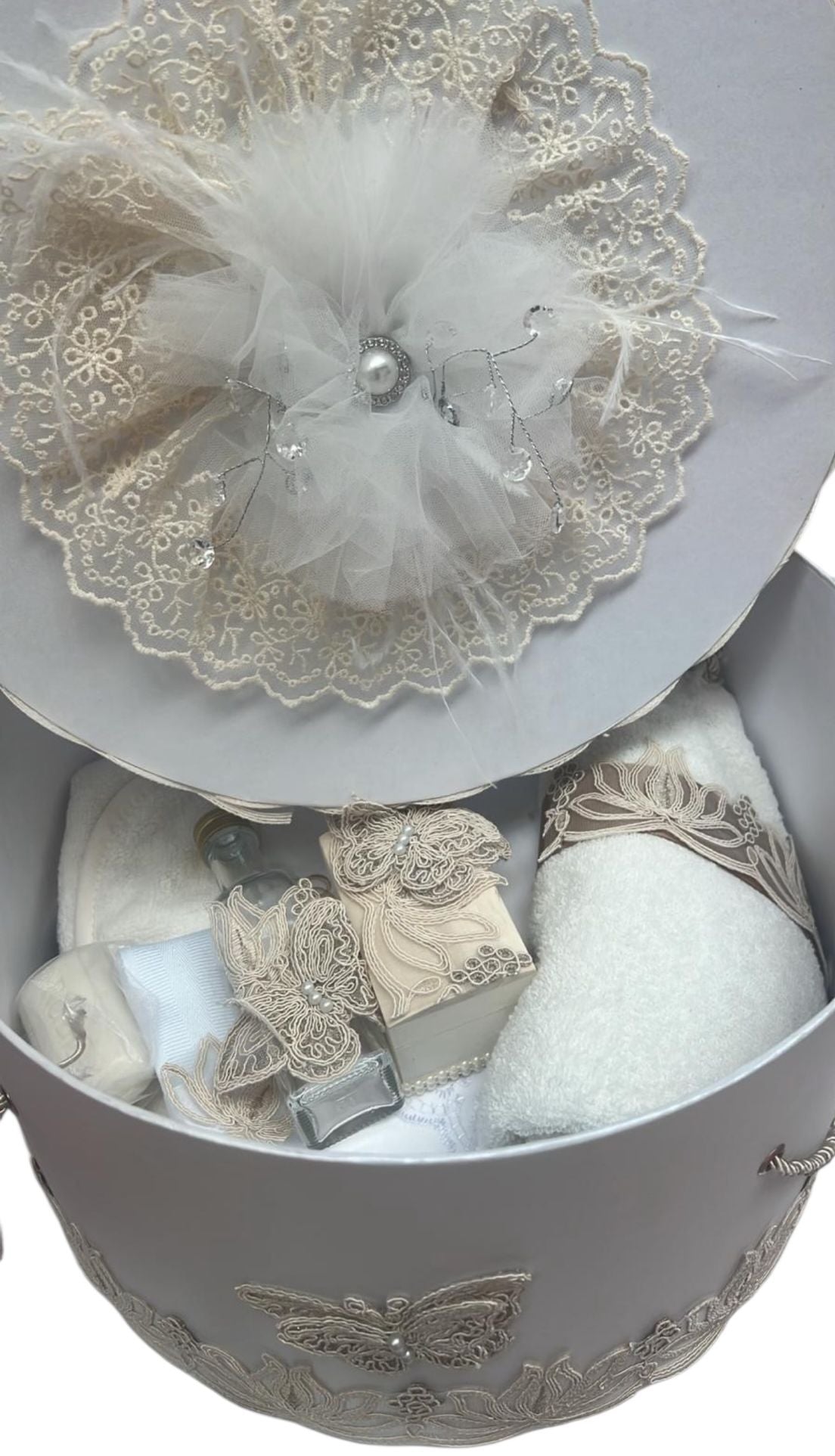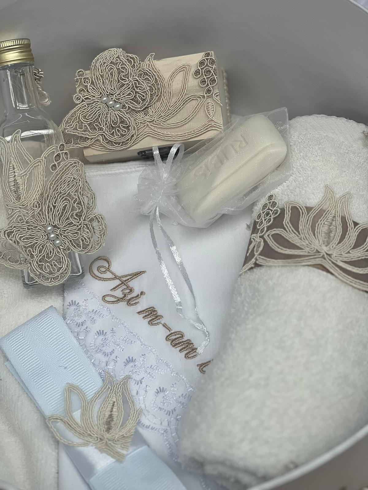 Acest trusou de botez este realizat cu grijă și atenție la detalii, special pentru a marca primul moment important din viața micuțului tău. Setul conține toate elementele esențiale pentru ceremonia religioasă, îmbinând tradiția cu eleganța și rafinamentul.